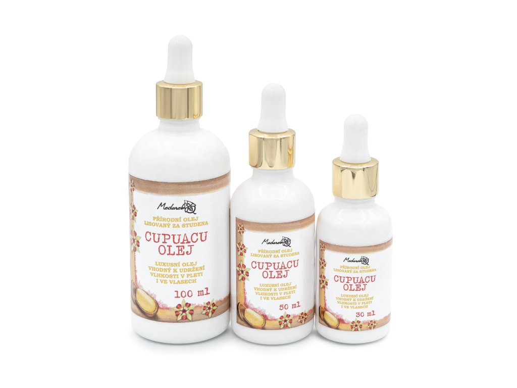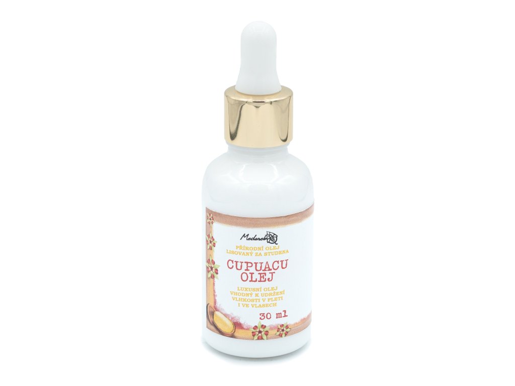 Cupuacu olej patří mezi luxusní kosmetické oleje. Vzniká při filtraci cupuacu másla z plodů Kakaovníku velkokvětého, který divoce roste ve východní oblasti brazilských amazonských deštných pralesů. Cupuacu olej je skvělou veganskou alternativou k živočišnému lanolinu. Dokáže absorbovat vodu a uzamknout ji v pleti, kůži či vlasech. Díky tomu je olej vhodný pro péči o suchou pokožku, kdy je vhodné jej nanášet na navlhčenou kůži po sprše nebo po nanesení hydrolátu. Cupuacu může snížit výskyt vrásek a má pozitivní vliv na obnovení pružnosti pleti.