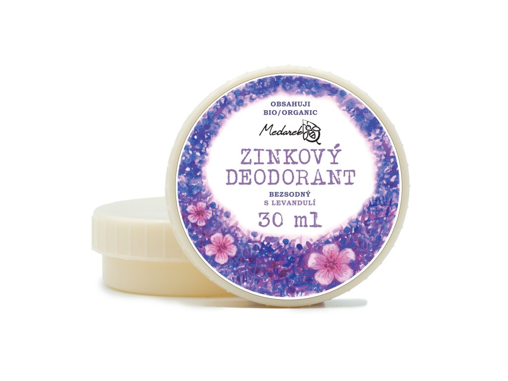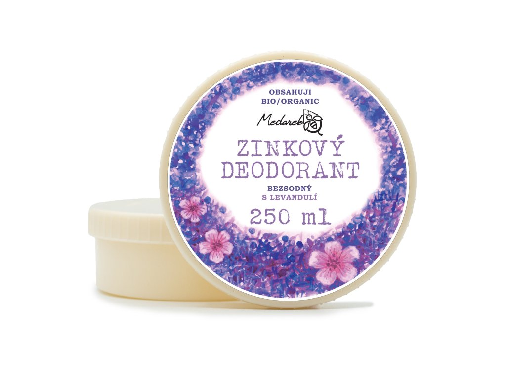 Přírodní bezsodný zinkový deodorant s vůní levandule.