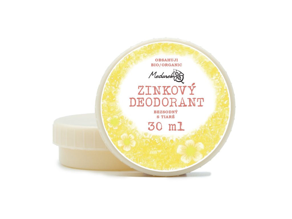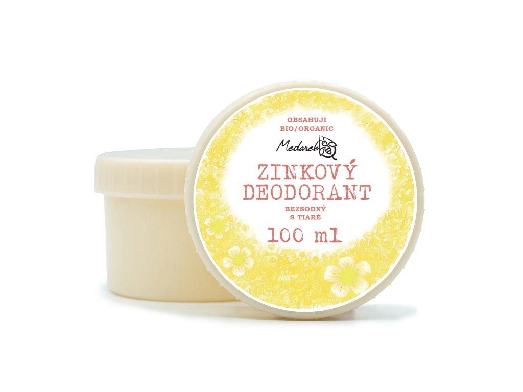 Základ tvoří bio jojobový olej, který znáte z naší Zinkové masti. Jojobový olej zvyšuje odolnost kůže a má úžasné regenerační účinky. Tuhost zajišťuje bio mangové máslo, které je pro svou jemnost a dobrou snášenlivost vhodné pro nejmenší děti i osoby s citlivou kůží. Mangové máslo zvyšuje pružnost kůže. Deodorační funkci plní bio pudr z oddenků rostliny zvané Maranta třtinová (Maranta Arundinacea). Pudr zjemňuje kůži a hlavně absorbuje přebytečný maz z pokožky. Oxid zinečnatý zklidňuje podráždění kůže a jemně vysušuje. Ricinoleát zinečnatý je zinečnatá sůl získávána z ricinového oleje. Napomáhá absorbovat nepříjemný zápach tím, že brání rozkladu bakterií a stejně jako oxid zinečnatý má zklidňující účinky. Jedná se o naprosto bezpečnou látku, která nebrání přirozenému pocení. Nemá negativní vliv na přirozenou kožní flóru. Tiaré absolue je extrahováno bez použití agresivních chemických látek. Jde o produkci v organic kvalitě, taktéž způsob zpracování dodržuje postupy stejné jako u organic produktů, nicméně výrobce certifikaci z důvodu vysokých nákladů nezaplatil.
